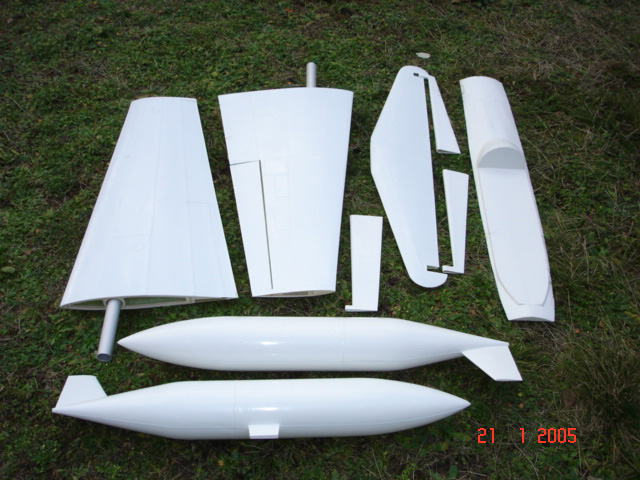 The wings and the elevator are produced in vacuum sandwich technology. The sandwich material is a specific polyester hard foam. All wing support structures are CNC made of 0.15'' plywood and 0.35'' 7-ply. Natrually those are already laminated. The ailerons are provided as elastic flaps and will be functionally supplied.